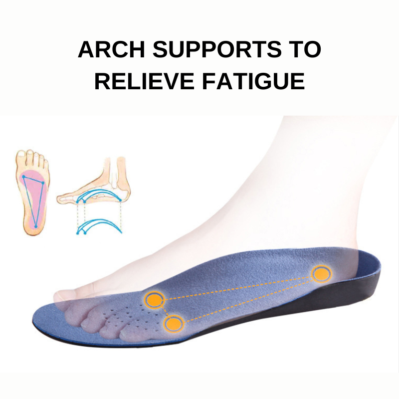Our premium insoles, featuring anatomical arch support help improve foot and leg alignment and eliminate the Pain caused by flat feet, poor walking posture & plantar fasciitis.